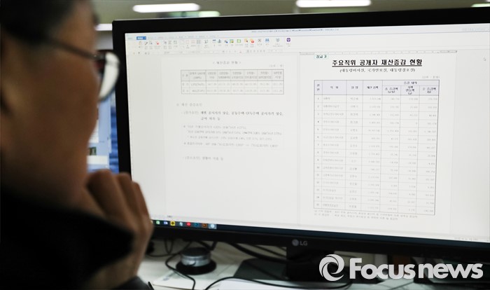 (서울=포커스뉴스) 25일 오전 서울 서초구 사무실에서 한 회사원이 2016년 정부공직자윤리위원회 관할 고위공직자 정기재산변동사항 공개관련 내용을 보고 있다.