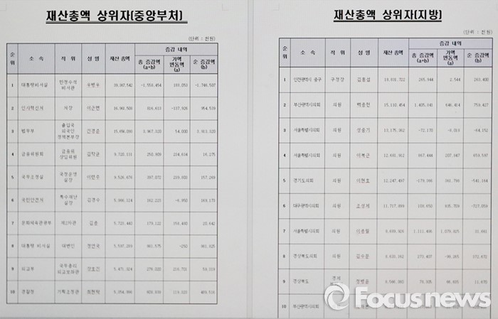 (서울=포커스뉴스) 정부공직자윤리위원회는 25일 오전 관할 공개대상자 1,813명에 대한 정기 재산변동사항 신고내역을 공개했다.