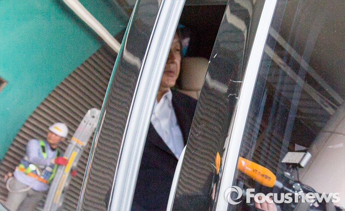 (서울=포커스뉴스) 이른바 진박 후보 공천장에 도장 못찍는다며 '옥새투쟁' 중인 김무성 새누리당 대표가 25일 오전 서울 김포공항에 도착해 당사로 이동 하고 있다.
