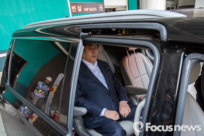 (서울=포커스뉴스) 이른바 진박 후보 공천장에 도장 못찍는다며 '옥새투쟁' 중인 김무성 새누리당 대표가 25일 오전 서울 김포공항에 도착해 당사로 이동 하고 있다.