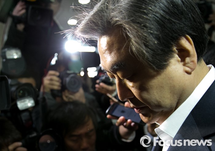 (서울=포커스뉴스) 김무성 새누리당 대표가 당 공천관리위원회의 결정에 반발해 유승민 의원 등 지역구 6곳에 대해 무공천을 선언해 갈등이 이어지고 있는 25일 오전 서울 여의도 당사로 김 대표가 취재진 질문을 받으며 들어서고 있다.