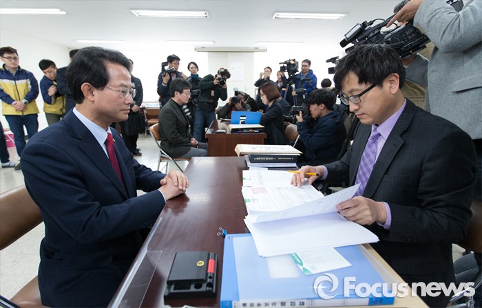 (대구=포커스뉴스) 25일 오전 대구 동구선거관리위원회에서 류성걸(대구 동갑) 의원이 후보자 등록을 하고 있다.