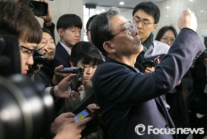 (서울=포커스뉴스) 김무성 새누리당 대표가 당 공천관리위원회의 결정에 반발해 유승민 의원 등 지역구 6곳에 대해 무공천을 선언해 갈등이 이어지고 있는 25일 오전 서울 여의도 당사로 이한구 공천관리위원장이 출근하며 취재진 질문에 답하고 있다.