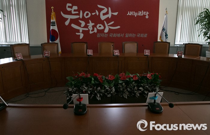 (서울=포커스뉴스) 25일 오전 서울 여의도 국회 새누리당 대표최고위원회의실에 불이 꺼져 있다. 이날 새누리당 최고위원회는 원유철 원내대표를 비롯한 최고위원들의 긴급 최고위원회 소집 요구로 국회 대표최고위원실에서 열릴 예정이었으나, 예정된 시간을 훌쩍 넘겨 당사 회의실에서 비공개로 열리게 되었다.