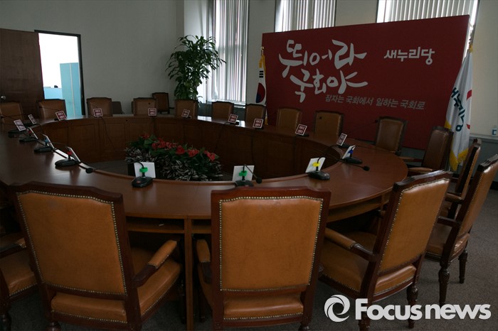 (서울=포커스뉴스) 25일 오전 서울 여의도 국회 새누리당 대표최고위원회의실에 불이 꺼져 있다. 이날 새누리당 최고위원회는 원유철 원내대표를 비롯한 최고위원들의 긴급 최고위원회 소집 요구로 국회 대표최고위원실에서 열릴 예정이었으나, 예정된 시간을 훌쩍 넘겨 당사 회의실에서 비공개로 열리게 되었다.