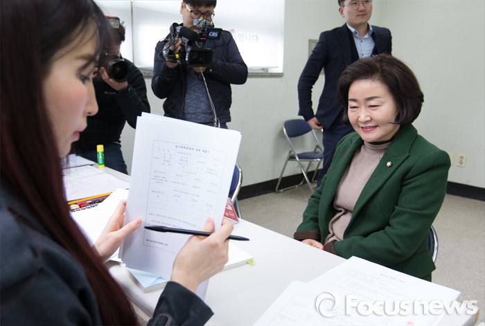 (대구=포커스뉴스) 25일 오전 대구 동구선거관리위원회에서 권은희(대구 북갑) 의원이 후보자 등록을 하고 있다.
