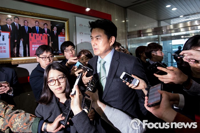 (서울=포커스뉴스) 이른바 진박 후보 공천장에 도장 못찍는다며 김무성 새누리당 대표의 '옥새투쟁'이 이어지고 있는 25일 오전 서울 영등포구 새누리당사 앞에서 김태호 새누리당 최고위원이 회의에 참석하기 위해 이동 하고 있다.