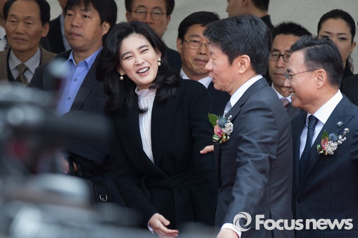 (서울=포커스뉴스) 25일 오전 서울 용산구 HDC신라면세점 그랜드 오픈식에서 이부진(왼쪽) 호텔신라 사장과 정몽규 현대산업개발 회장이 행사장으로 들어서고 있다.