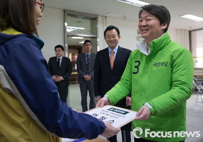 (서울=포커스뉴스) 노원병을 지역구로 출마하는 안철수 국민의당 상임공동대표가 25일 오후 서울 노원구 공릉동 선거관리위원회에서 제20대 국회의원 선거 후보자 등록을 하고 있다.