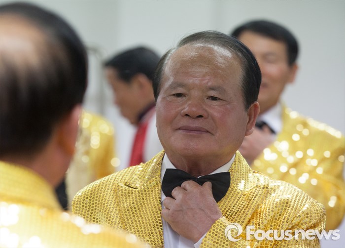 (공주=포커스뉴스) 25일 오후 충남 공주 공주문예회관에서 열린 2016 공주시 어르신건강체조 경연대회에서 참가자가 의상을 정리하고 있다.