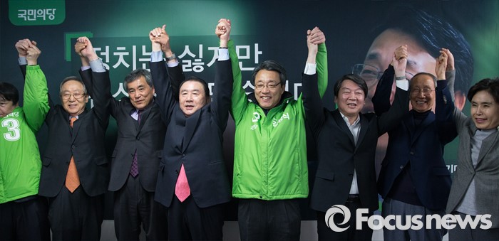 (서울=포커스뉴스) 안철수 국민의당 상임공동대표와 김성식 관악(갑) 예비후보가 25일 오후 서울 관악구 김 후보 선거사무소 개소식에서 내·외빈들과 함께 파이팅을 외치고 있다. 오른쪽 두 번째부터 윤여준 전 환경부 장관, 안 대표, 이훈평 전 의원, 이상돈 공동선대위원장.