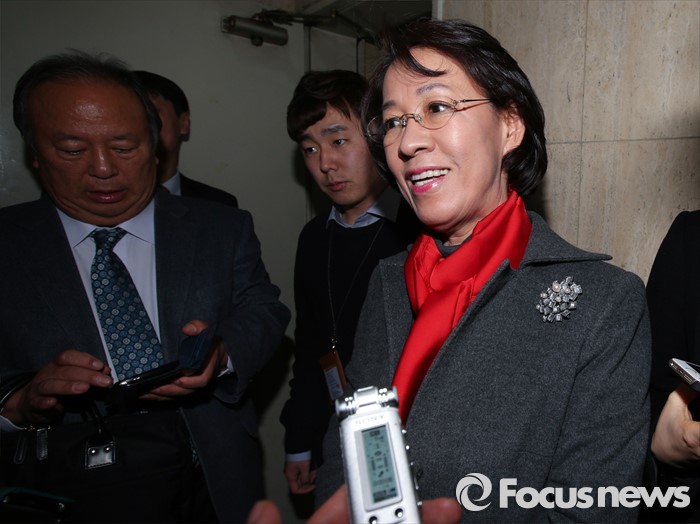 (서울=포커스뉴스) 이인선 새누리당 대구 수성을 후보가 25일 오후 서울 여의도 당사에서 비공개 최고위원회의 결과 소식을 듣고 취재진 질문에 답하며 밝게 웃고 있다. 이날 새누리당 최고위는 정종섭(대구 동갑), 추경호(대구 달성), 이인선(대구 수성을) 후보의 공천을 확정했으며, 유영하(서울 송파을), 이재만(대구 동을), 유재길(서울 은평을) 후보는 공천 의결 보류를 확정했다.