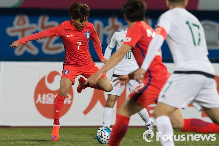 (이천=포커스뉴스) 25일 오후 경기 이천종합운동장에서 열린 KEB하나은행 초청 올림픽대표 대한민국과 알제리의 친선경기에서 후반전 한국 문창진이 상대 선수를 피해 패스를 하고 있다.