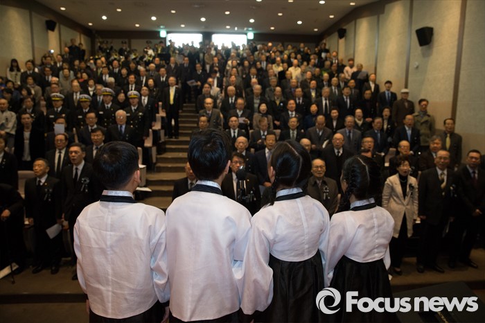 (서울=포커스뉴스) 26일 오전 서울 중구 안중근의사기념관에서 열린 '안중근의사 순국 106주기 추모식'에서 역사어린이합창단이 추념가를 부르고 있다.