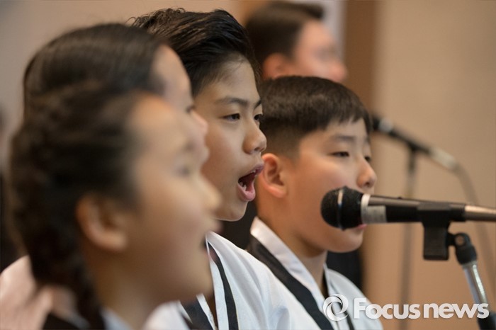 (서울=포커스뉴스) 26일 오전 서울 중구 안중근의사기념관에서 열린 '안중근의사 순국 106주기 추모식'에서 역사어린이합창단이 추념가를 부르고 있다.