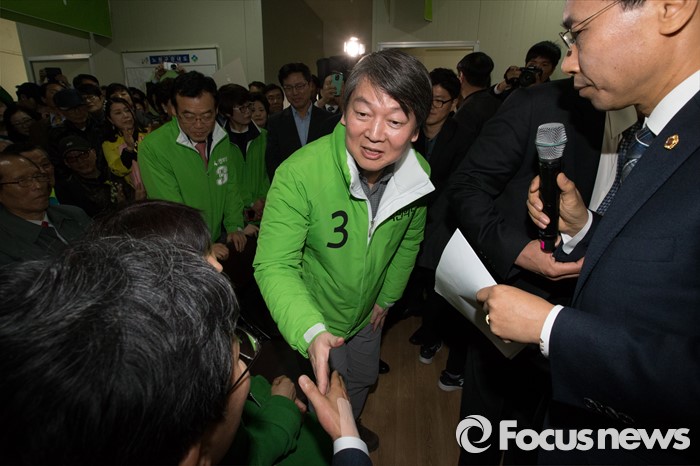 (서울=포커스뉴스) 안철수 국민의당 상임공동대표가 26일 오후 서울 노원구 노원병 선거사무소 개소식에서 내외빈과 악수를 하고 있다.
