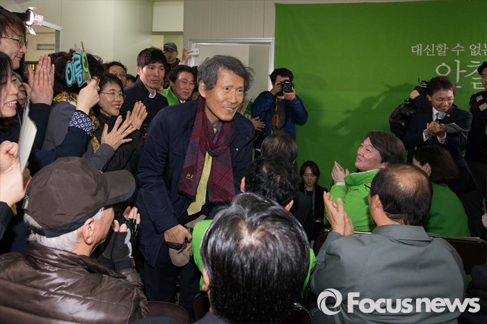 (서울=포커스뉴스) 26일 오후 서울 노원구 노원병 선거사무소 개소식에서 한상진 서울대 명예교수가 내외빈들에게 인사하고 있다.
