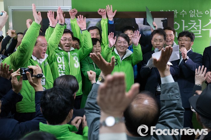 (서울=포커스뉴스) 안철수 국민의당 상임공동대표가 26일 오후 서울 노원구 노원병 선거사무소 개소식에서 만세삼창을 외치고 있다.