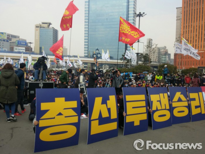 전국민주노동조합총연맹은 이날 집회가 "박근혜 정부의 경제실패와 민생파탄의 책임을 국민들에게 묻는 자리"라고 밝히며 노동,민생, 평화, 재벌 등 이날 집회에서 다룬 의제들을 전면에 내세워 총선에서 '실력 행사'를 할 것임을 밝혔다.민중총궐기 투쟁본부 등 진보단체들이 26일 오후 서울 용산구 서울역 앞 광장에서 '2016 총선투쟁 승리 범국민대회'를 열어 정부를 비판했다. 장지훈 기자 jangpro@focus.co.kr