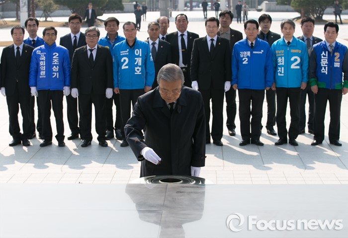 (광주=포커스뉴스) 김종인 더불어민주당 비대위 대표가 27일 오전 광주 북구 국립 5·18민주묘지를 방문해 전남 및 광주지역 20대 총선 후보들과 함께 참배를 하고 있다.