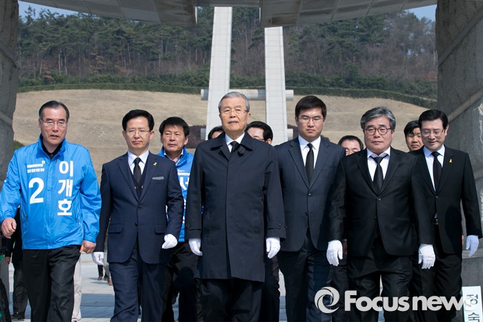 (광주=포커스뉴스) 김종인 더불어민주당 비대위 대표가 20대 총선 전남 및 광주지역 후보들과 함께 27일 오전 광주 북구 국립5·18민주묘지를 방문해 참배를 마친 뒤 이동하고 있다.
