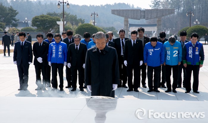 (광주=포커스뉴스) 김종인 더불어민주당 비대위 대표가 27일 오전 광주 북구 국립5·18민주묘지를 방문해 20대 총선 전남 및 광주지역 후보들과 함께 참배를 하고 있다.
