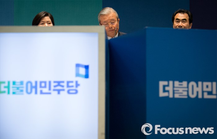 (광주=포커스뉴스) 김종인(가운데) 더불어민주당 비대위 대표가 27일 오전 광주 서구 김대중컨벤션센터에서 열린 더불어민주당 경제살리기 광주·전남 20대 총선 후보자 연석회의에 참석해 생각에 잠겨 있다.