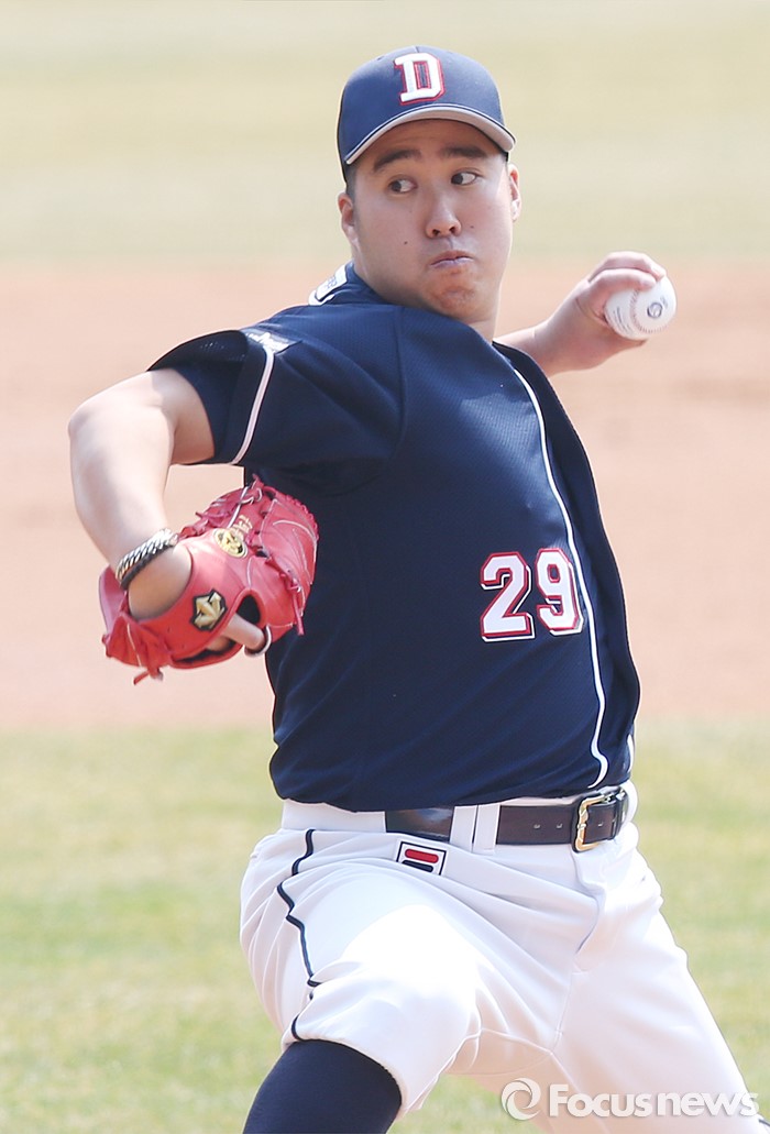(서울=포커스뉴스) 27일 서울 잠실구장에서 열린 2016프로야구 시범경기 두산-LG 경기에서 1회말 두산 선발투수 유희관이 투구하고 있다.