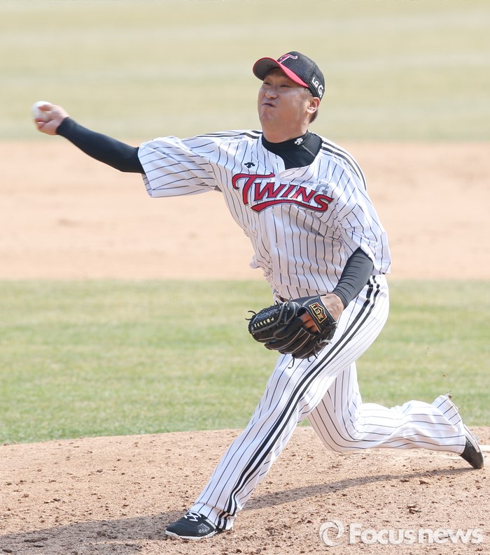 (서울=포커스뉴스) 27일 서울 잠실구장에서 열린 2016프로야구 시범경기 두산-LG 경기에서 LG 투수 신승현이 8회 등판해 투구하고 있다.