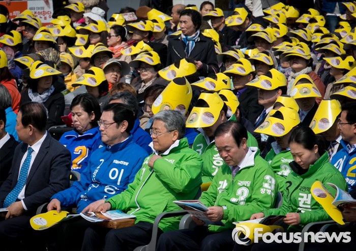 (광주=포커스뉴스) 20대 총선에 출마하는 더불어민주당, 국민의당 후보들이 27일 오후 광주광역시청 문화광장에서 열린 2016 부활절 연합예배에 참석해 자리하고 있다.