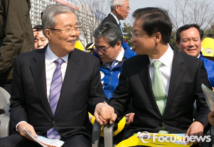 (광주=포커스뉴스) 김종인(왼쪽) 더불어민주당 비대위 대표, 천정배 국민의당 공동대표가 27일 오후 광주광역시청 문화광장에서 열린 2016 부활절 연합예배에 참석해 대화하고 있다.
