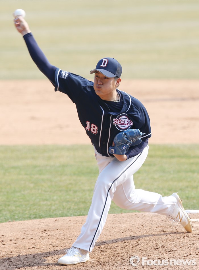 (서울=포커스뉴스) 27일 서울 잠실구장에서 열린 2016프로야구 시범경기 두산-LG 경기에서 8회말 두산 투수 김강률이 투구하고 있다.