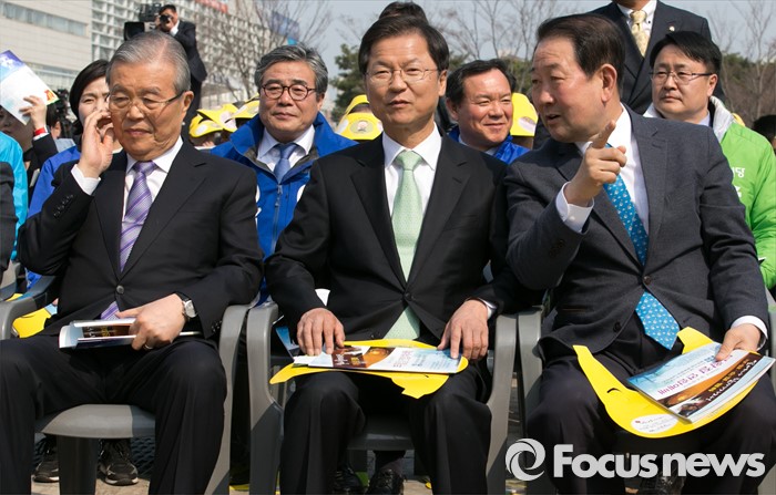 (광주=포커스뉴스) 천정배(가운데) 국민의당 공동대표와 박주선(오른쪽) 최고위원이 27일 오후 광주광역시청 문화광장에서 열린 2016 부활절 연합예배에 참석해 대화하고 있다. 왼쪽은 김종인 더불어민주당 비대위 대표.