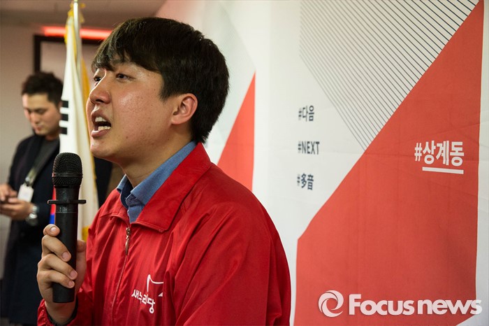 (서울=포커스뉴스) 이준석 새누리당 서울 노원병 후보가 27일 오후 서울 노원구 자신의 선거사무소 개소식에서 인사말을 하고 있다.