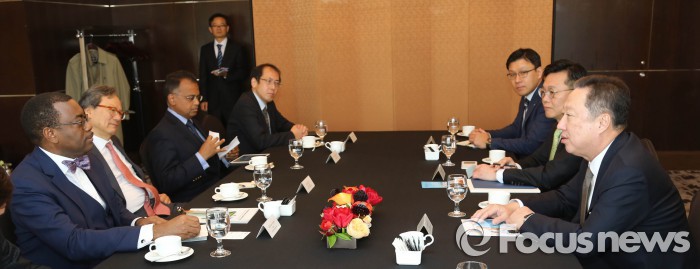 (서울=포커스뉴스) 산업통상자원부는 27일 한국기술센터에서 주형환 장관이 아킨우미 아데시나 아프리카 개발은행(AfDB) 총재와 면담을 갖고 '한-아프리카 인프라 협력기구'를 구축·운영하기로 합의했다고 28일 밝혔다.