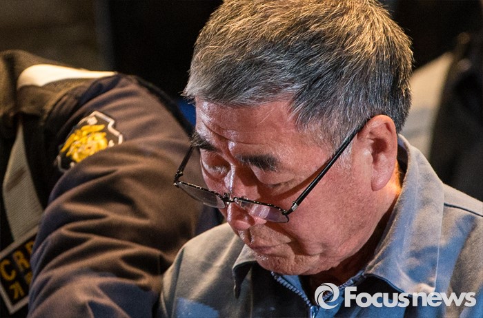 (서울=포커스뉴스) 28일 오전 서울시청 다목적홀에서 세월호 참사 특별조사위원회의 제2차 청문회가 열렸다. 이날 청문회에 증인으로 참석한 이준석 선장이 굳은 표정을 짓고 있다.