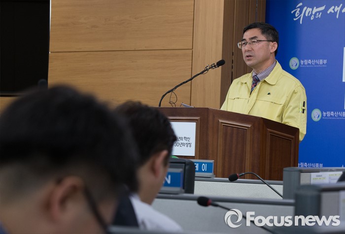 (세종=포커스뉴스) 이준원 농림축산식품부 식품산업정책실장이 28일 오전 세종시 정부세종청사 농식품부 기자실에서 고병원성 AI 및 구제역 방역대책 추진상황에 대한 브리핑을 하고 있다.