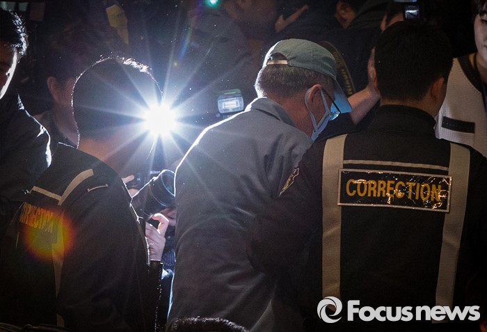 (서울=포커스뉴스) 28일 오전 서울시청 다목적홀에서 세월호 참사 특별조사위원회의 제2차 청문회가 열렸다. 이날 청문회에 증인으로 참석한 이준석 선장이 정회 후 청문회장을 빠져나가고 있다.