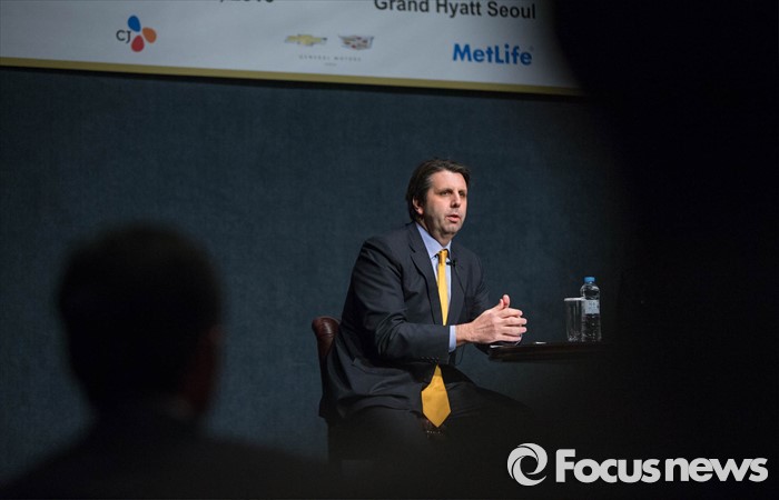 (서울=포커스뉴스) 마크 리퍼트 주한미국대사가 28일 오전 서울 용산구 그랜드하얏트 호텔에서 열린 '주한미국대사와의 오찬 간담회'에 참석, 사회자의 질문에 답변을 하고 있다.