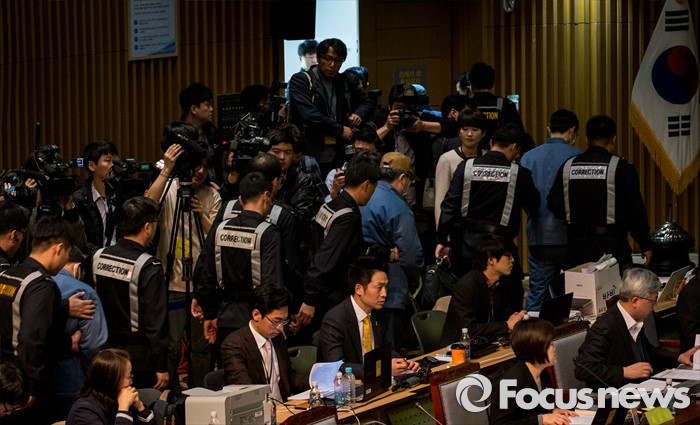 | △ 청문회 빠져나가는 세월호 증인들 |