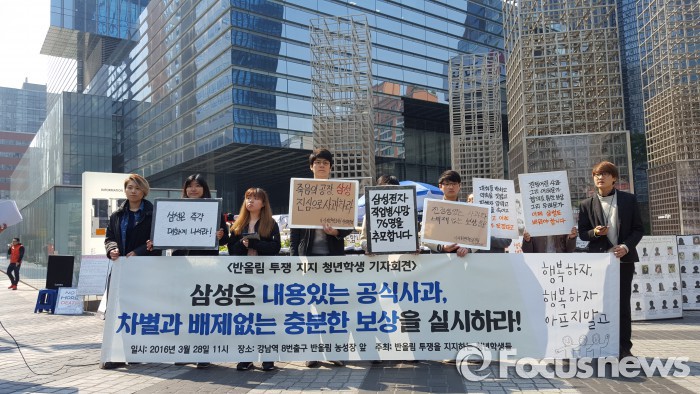 학생들은 이날 삼성의 구체적인 공식사과와 차별 없는 온전한 보상을 촉구했다.