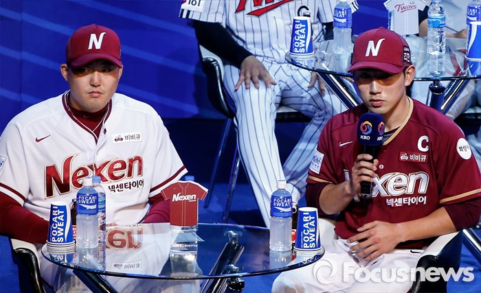 (서울=포커스뉴스) 28일 오후 서울 용산구 브루스퀘어 삼성카드홀에서 열린 '2016 타이어뱅크 프로야구 미디어데이 & 팬페스트' 행사에 참석한 넥센 히어로즈 서건창 선수가 새 시즌에 임하는 각오를 밝히고 있다.