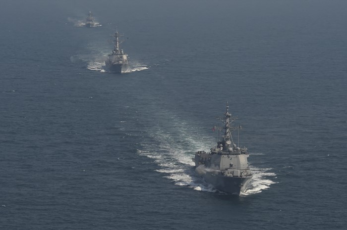 | △ 주포 사격하는 한·미 이지스 구축함들 |
