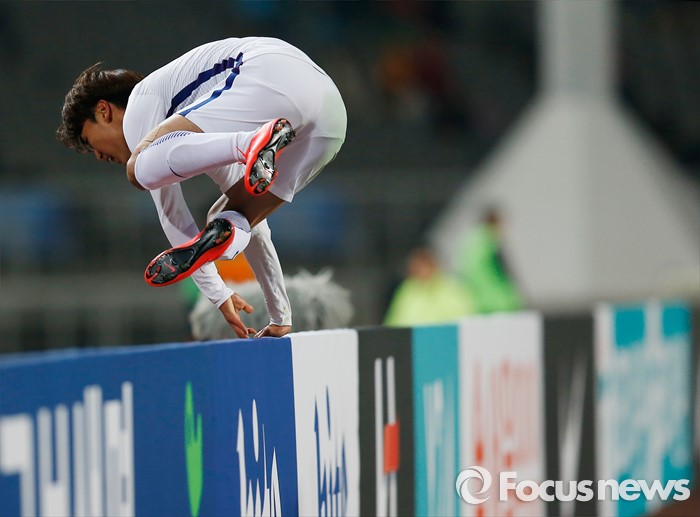 (고양=포커스뉴스) 28일 오후 경기 고양종합운동장에서 열린 올림픽축구대표팀 2차 평가전 대한민국과 알제리의 경기에서 한국 문창진이 후반전 추가골을 넣고 세리머니를 하고 있다.