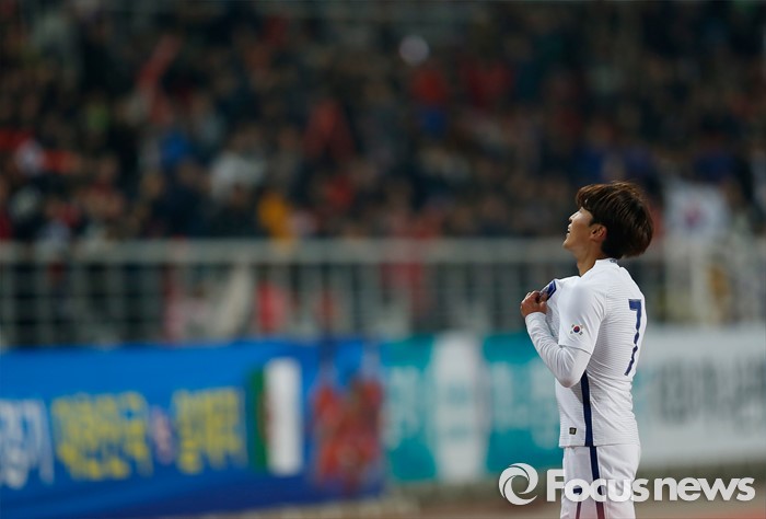 (고양=포커스뉴스) 28일 오후 경기 고양종합운동장에서 열린 올림픽축구대표팀 2차 평가전 대한민국과 알제리의 경기에서 한국 문창진이 후반전 추가골을 넣고 세리머니를 하고 있다.