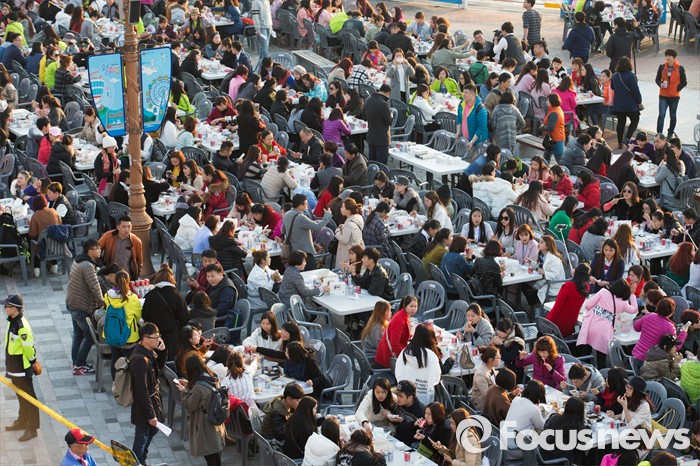 (인천=포커스뉴스) 28일 오후 인천 중구 월미 문화의 거리에서 중국 아오란 그룹 임직원 4500명이 치맥파티를 즐기고 있다.