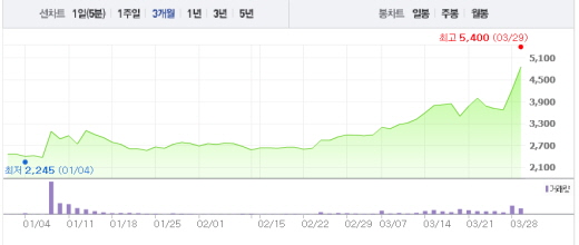 웰메이드예당은 이날 오전 9시19분 현재 전일대비 14.56%(615원) 오른 4840원에 거래되고 있다. 웰메이드예당은 유동근, 전인화, 오연서 등의 배우와 걸스데이 등이 소속된 연예기획사다.