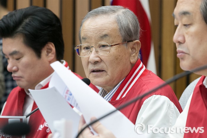 (서울=포커스뉴스) 강봉균(가운데) 새누리당 공동 선거대책위원장이 29일 오전 서울 여의도 국회에서 열린 첫 중앙선거대책위원회의에 참석해, 20대 총선 경제정책 공약을 설명하고 있다.