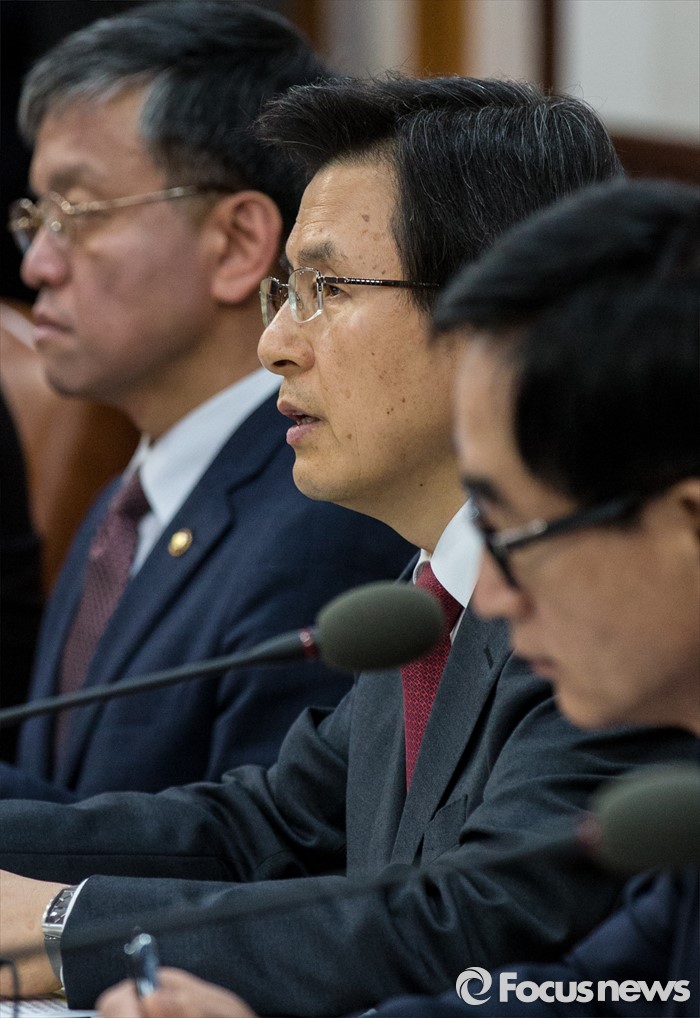 (서울=포커스뉴스) 29일 오전 서울 종로구 정부서울청사에서 열린 국무회의에 참석한황교안 국무총리가 모두발언 하고 있다.