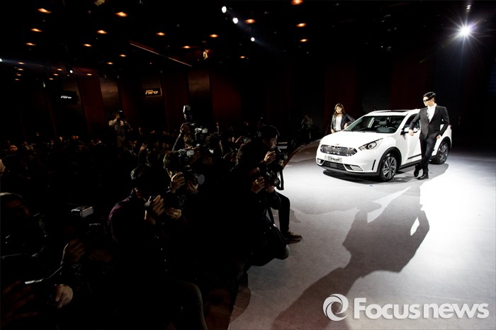 (서울=포커스뉴스) 29일 오전 서울 광진구 쉐라톤 그랜드 워커힐에서 기아차 친환경 소형 SUV '니로(NIRO)'가 공개돼고 있다.